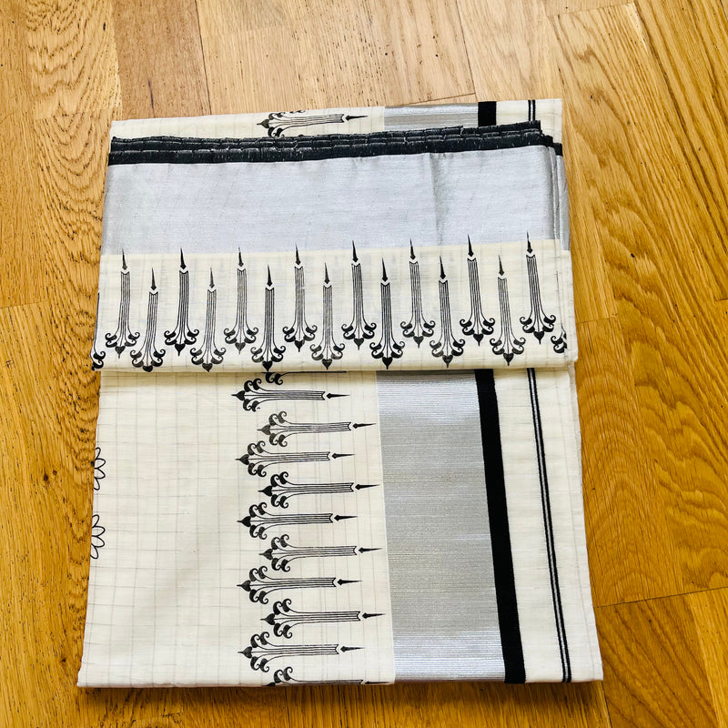 Kerala Set Saree with Silver lines and Silver Zari Border