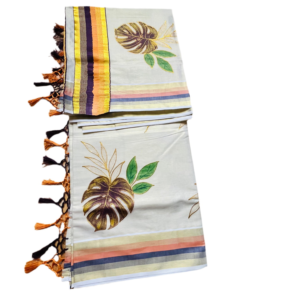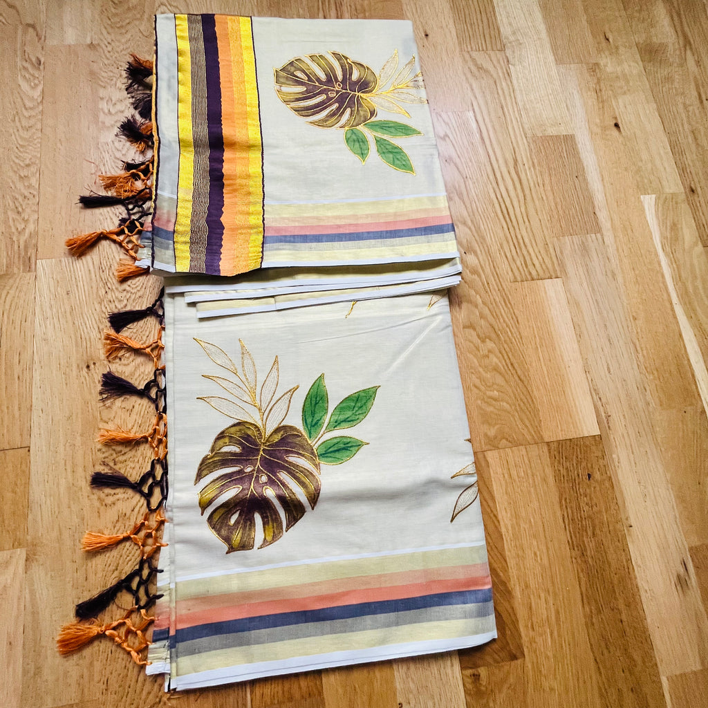 Gold-Toned And Cream-Coloured Kasavu Saree
