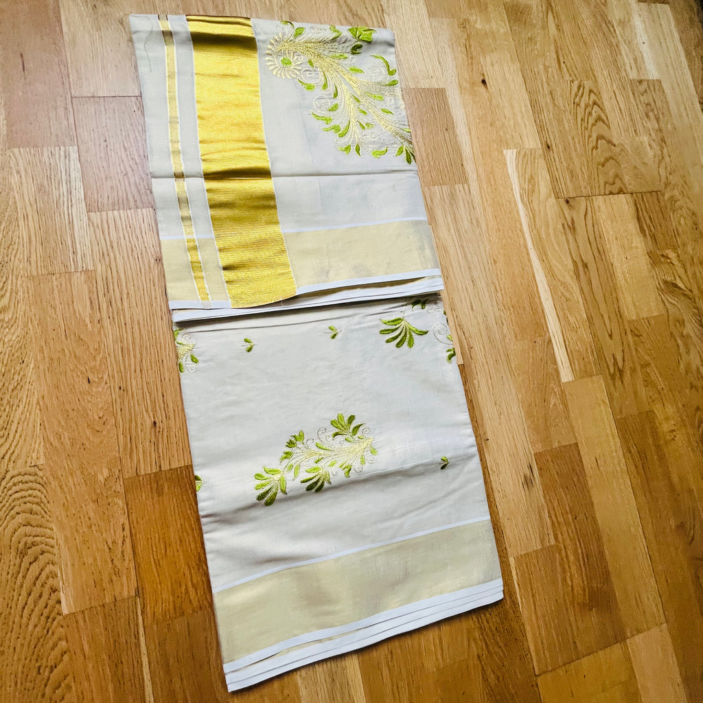 Gold-Toned And Cream-Coloured Kasavu Saree