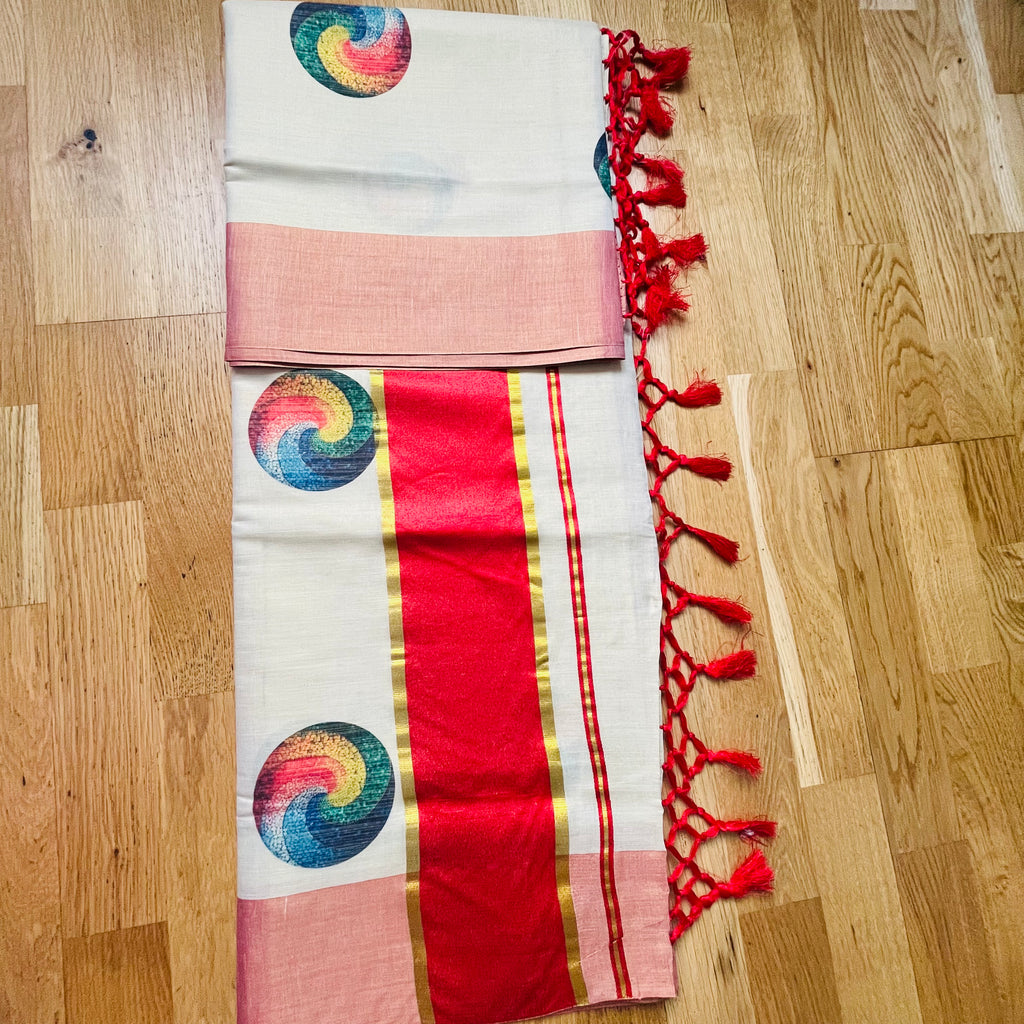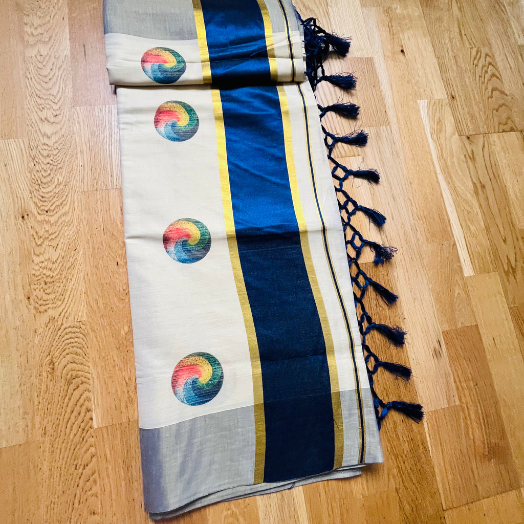 Gold-Toned And Cream-Coloured Kasavu Saree